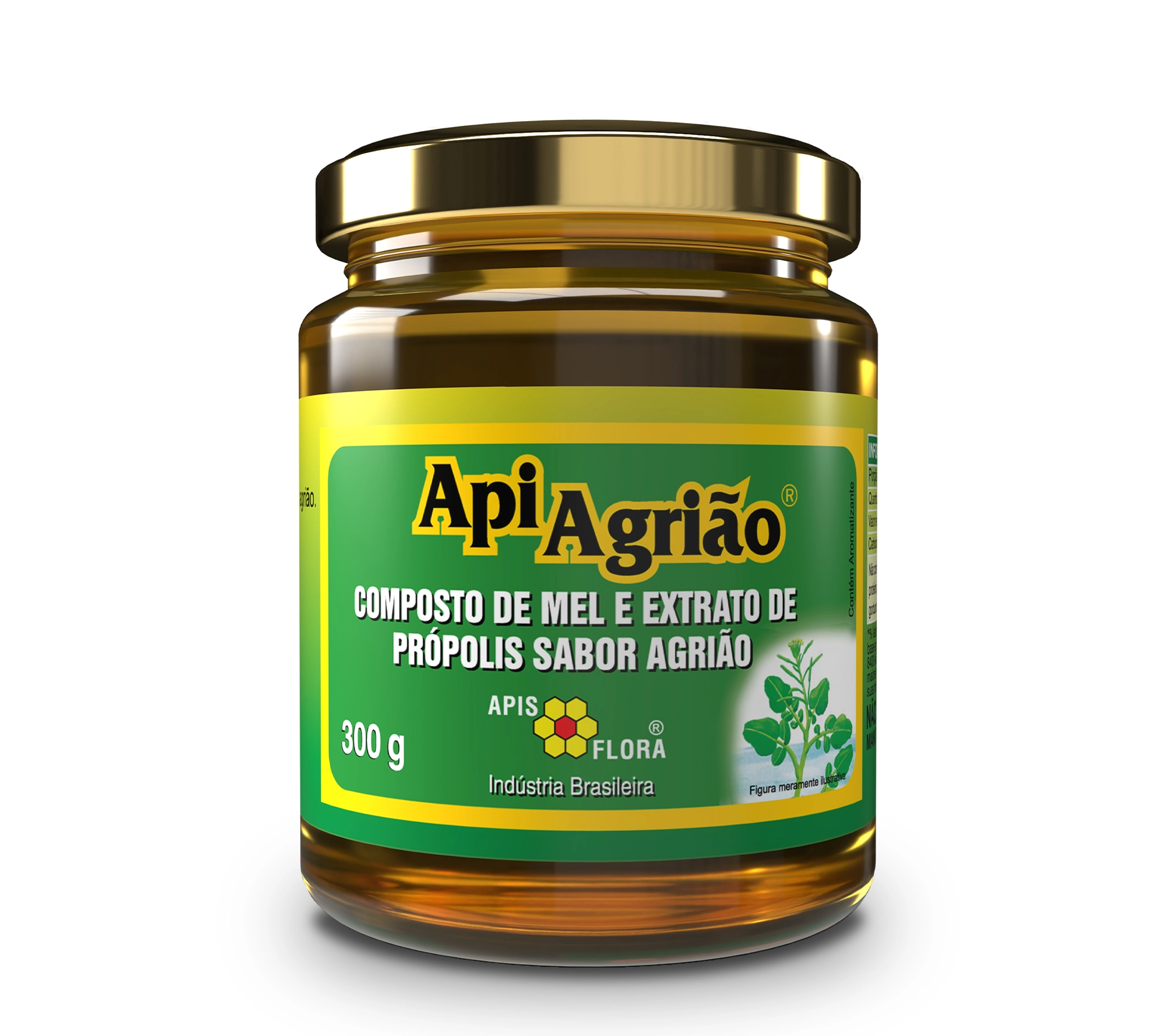 O Apiagrião é um composto de mel polifloral, extrato de própolis e extrato de agrião (Nasturtium officinale). Apresenta sabor suave e adocicado.