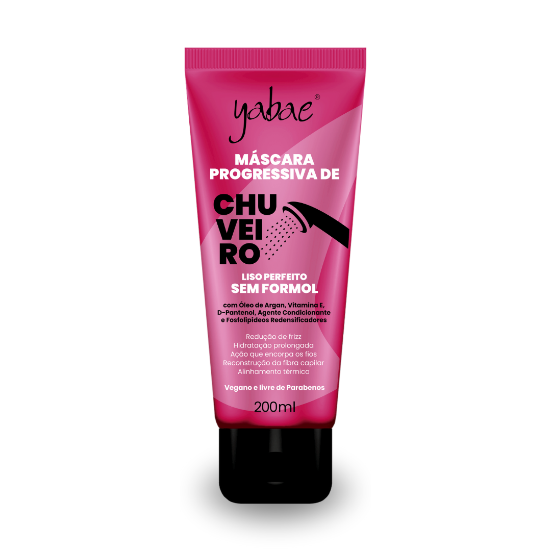 A Máscara Progressiva de Chuveiro Yabae, é ideal para quem busca praticidade para o alinhamento dos cabelos, redução de volume e redução do frizz com alto poder de hidratação. Formulado com Vitamina E, Agente Condicionante, Fosfolipideos Redensificadores, Óleo de Argan e D-Pantenol, proporciona brilho, redução de frizz, hidratação prolongada, ação que encorpa os fios, reconstrução da fibra capilar e alinhamento térmico.